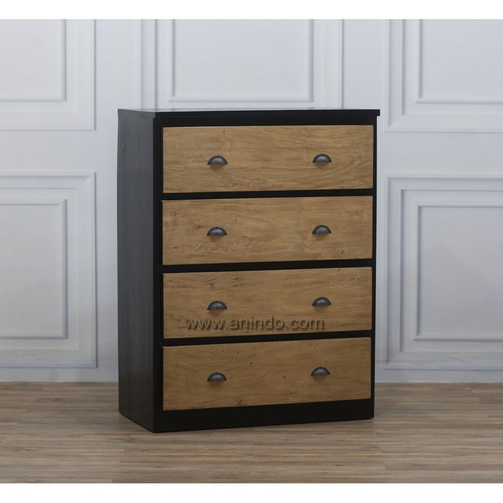 Glendale chest 4 drawers is made of sustainable solid mango wood. Antique black combined natural finish. Antique solid brass handles.