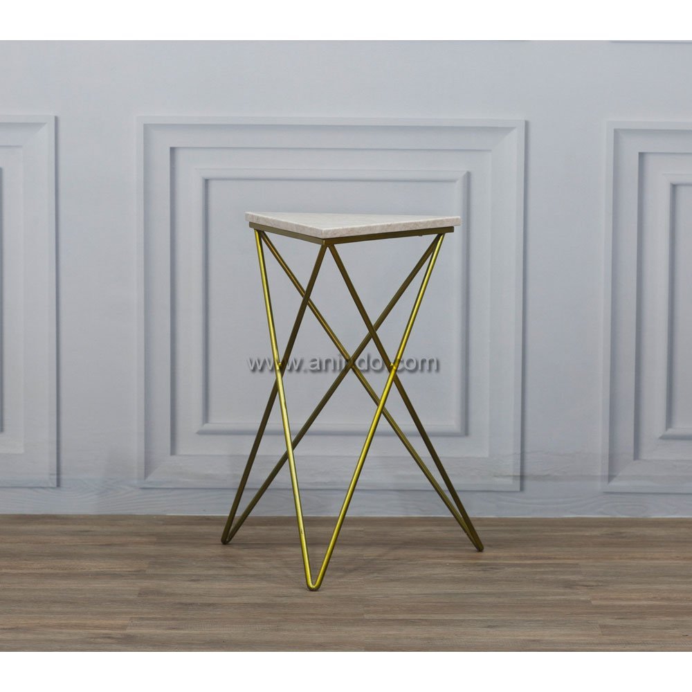 Marion table is made of iron. Gold Painted finish. Cream marble top. Match to Marion Chair