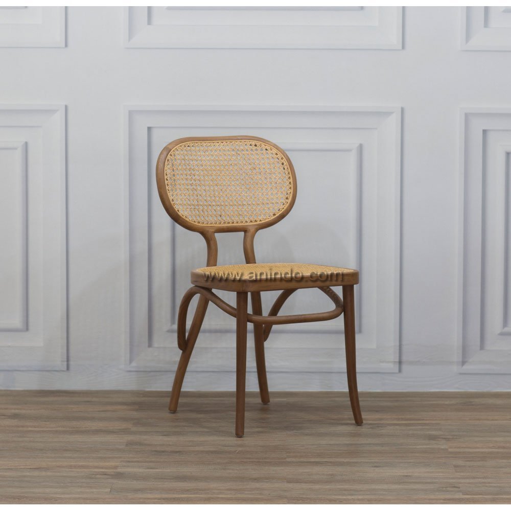 Oyama dining chair is made of solid teak wood with natural rattan on seat & back. Antique finish.