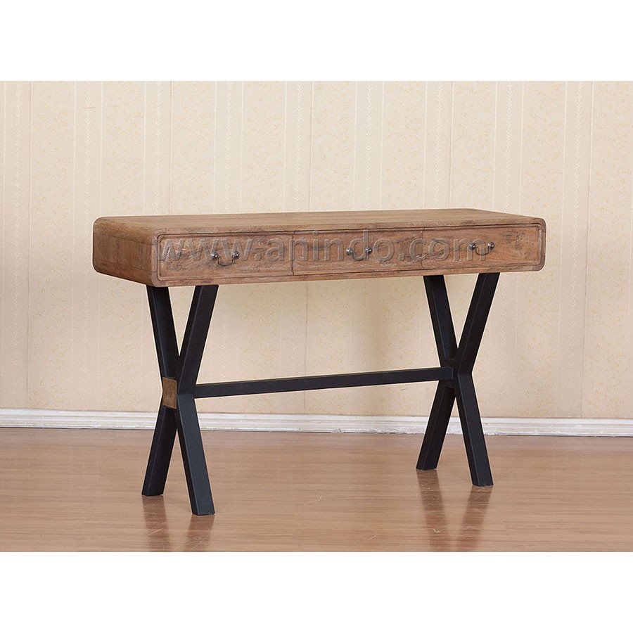 Paris 3 drawers console table is made of sustainable solid mango wood combined with black painted wrought iron in rustic finish. Antique solid brass handles.