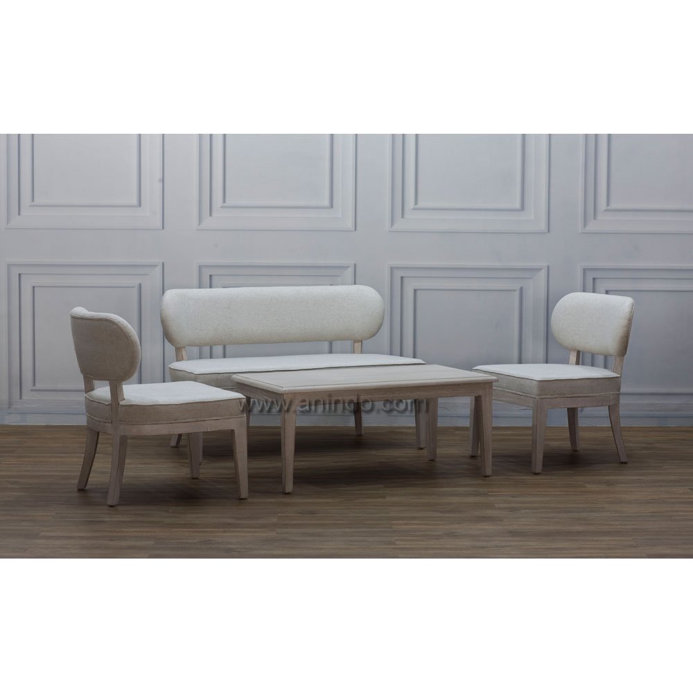 Virginia loveseat is made of solid mindi wood. Antique finish. Upholstered in cream ...
