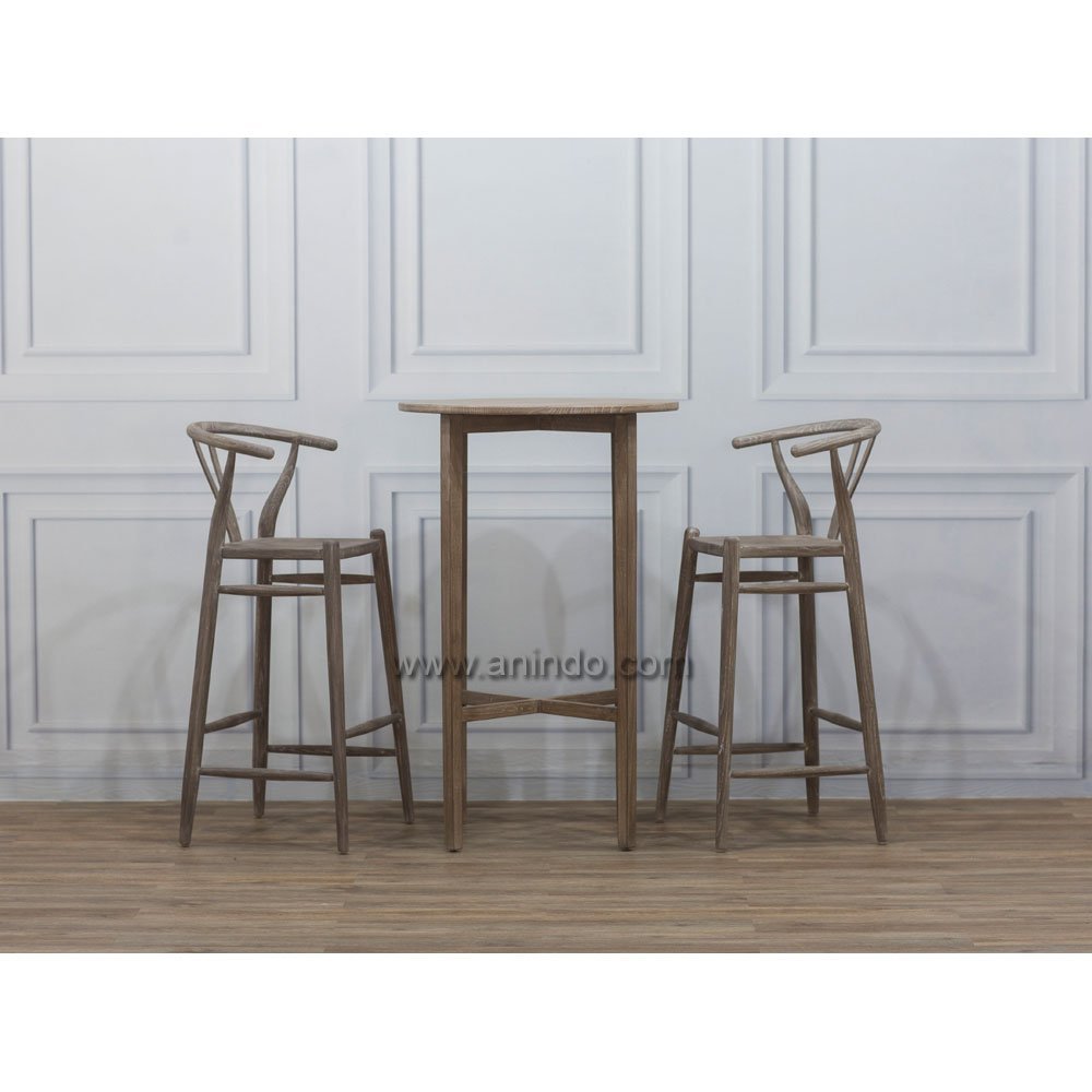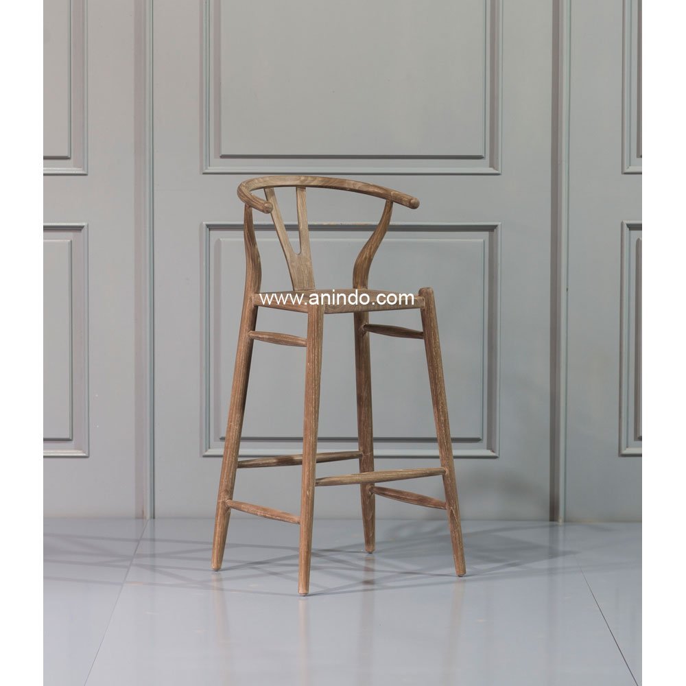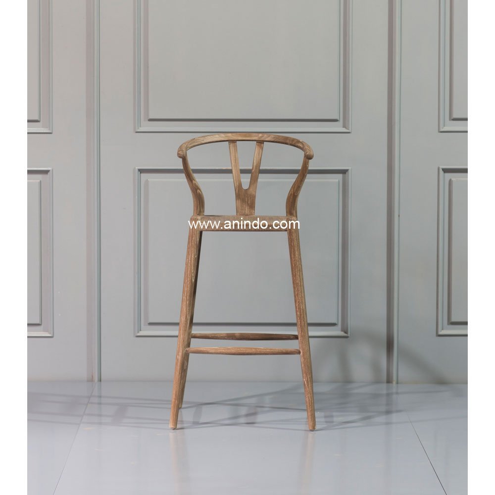 Wishbone bar stool is made of solid sungkai wood. Antique finish. Match to Wishbone Bar Table.