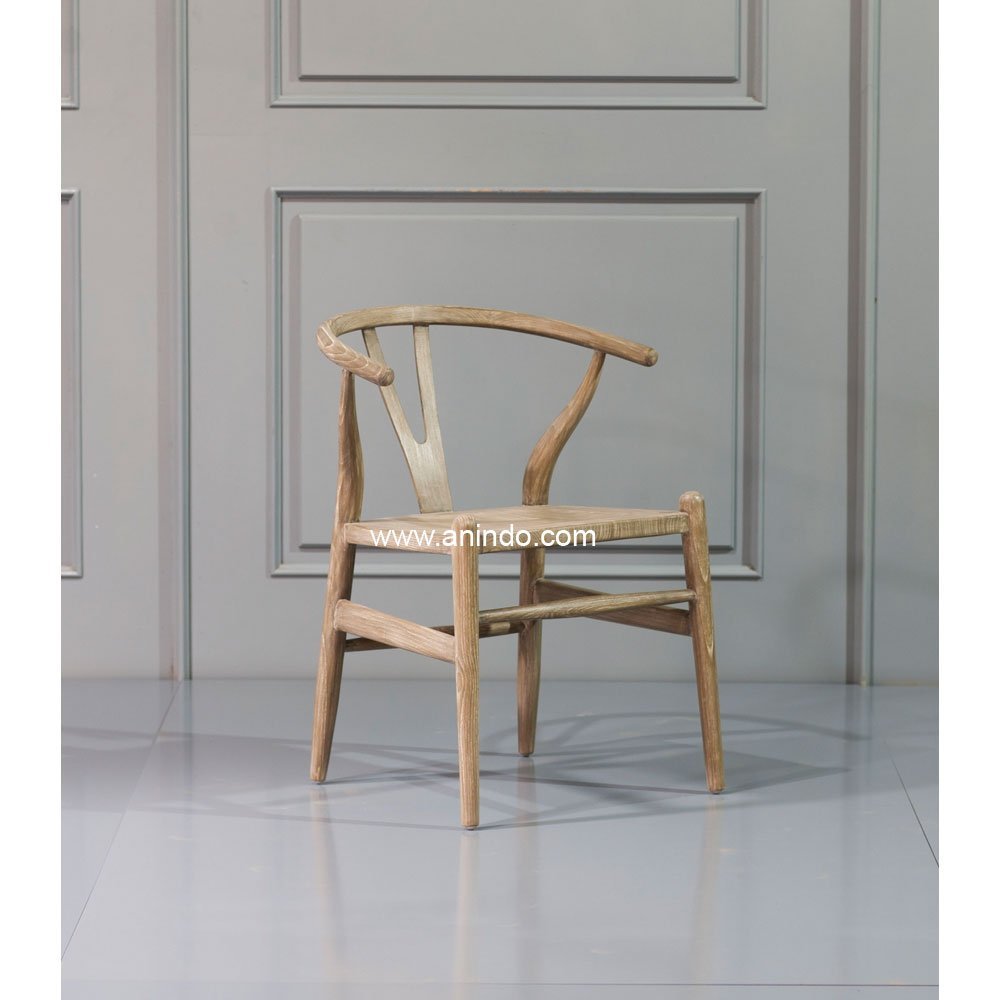 Wishbone dining chair is made of solid sungkai wood. Antique finish.