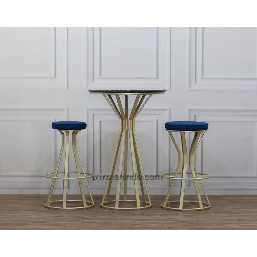 Cafe table YSK with 2 stools is made of iron combined with oak ...