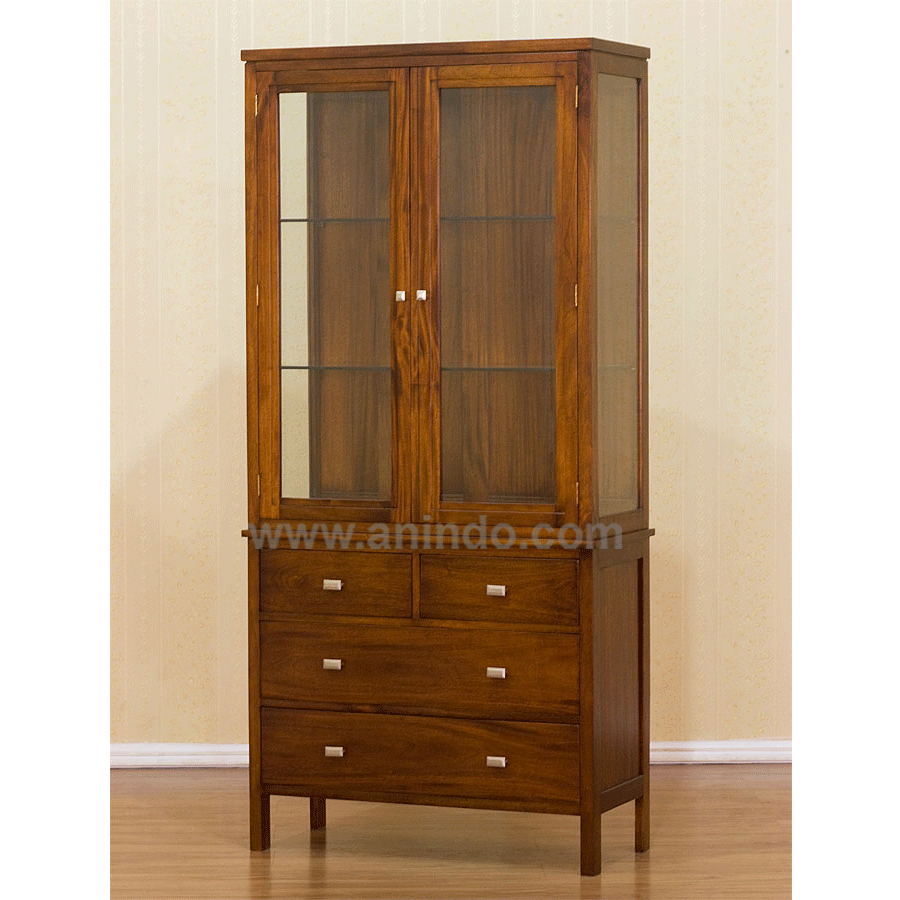 Our bookcase 2 doors 4?drawers with glass is made of mahogany wood in pecan finish.
