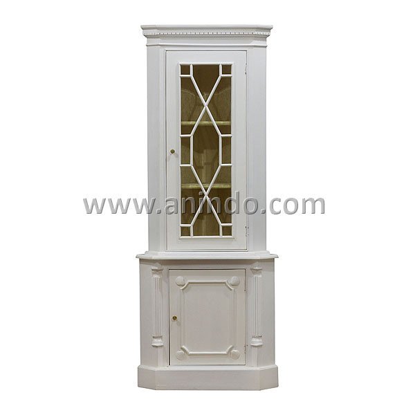 Our corner cabinet 1 door is made of mahogany wood in white painted finish.