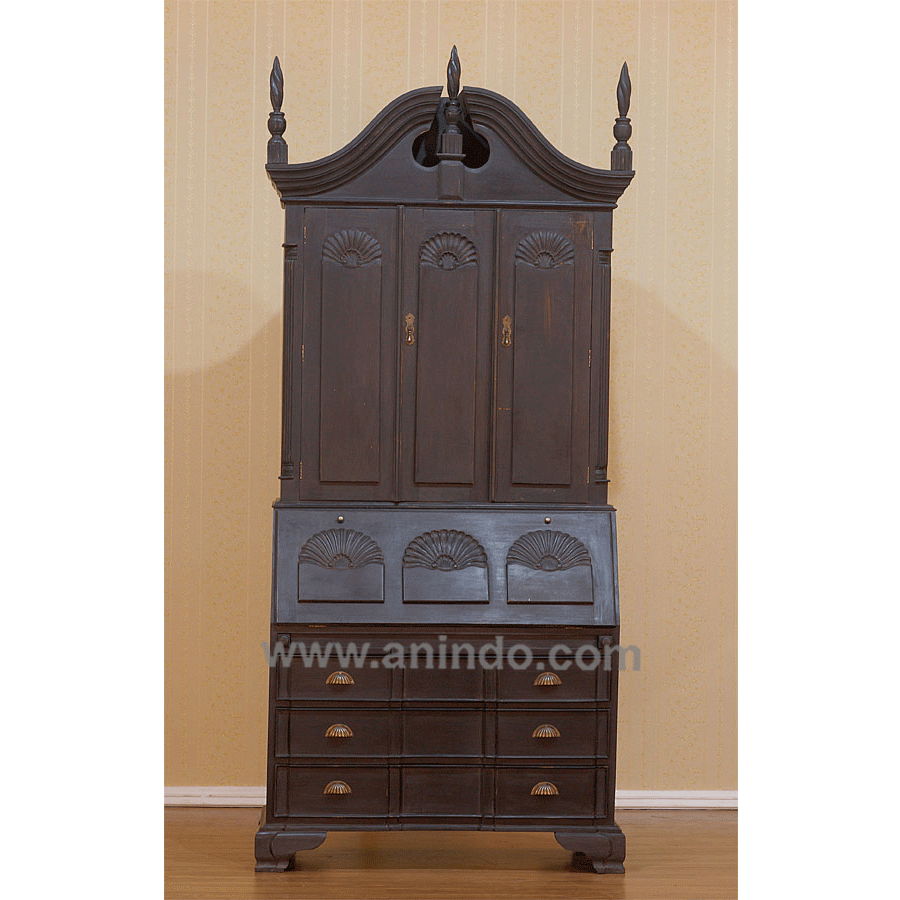 Chippendale bureau 3 drawers with 2 doors is made of solid mahogany wood in walnut ...