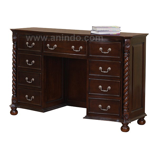Canopy writing desk 9 drawers is made of solid mahogany wood in red mahogany finish. Antique solid brass handles.