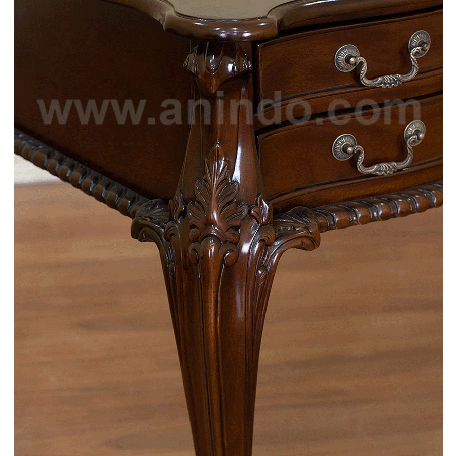 French writing desk 5 drawers is made of solid mahogany wood in pecan finish. With ...