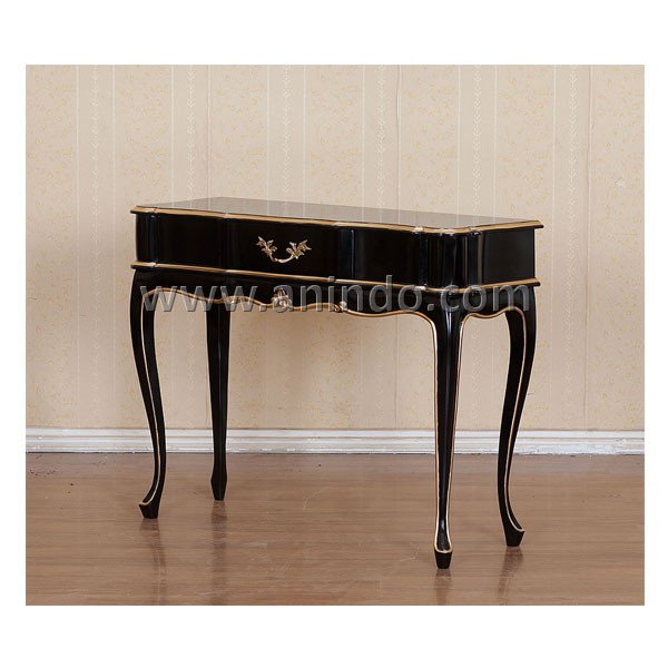 Lucy desk is made of solid mahogany wood in black combined with gold painted finish. Solid brass handle.