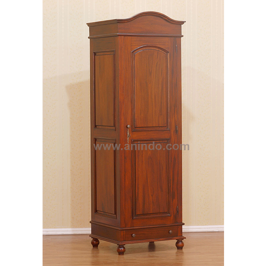 Alabama 1 door 1 drawer wardrobe is made of solid mahogany wood in walnut finish. Antique solid brass hardwares.