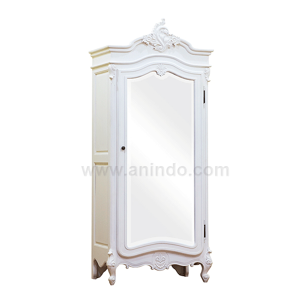 Thomas 1 door armoire with mirror is made of solid mahogany wood in white painted finish. Antique solid brass handle.