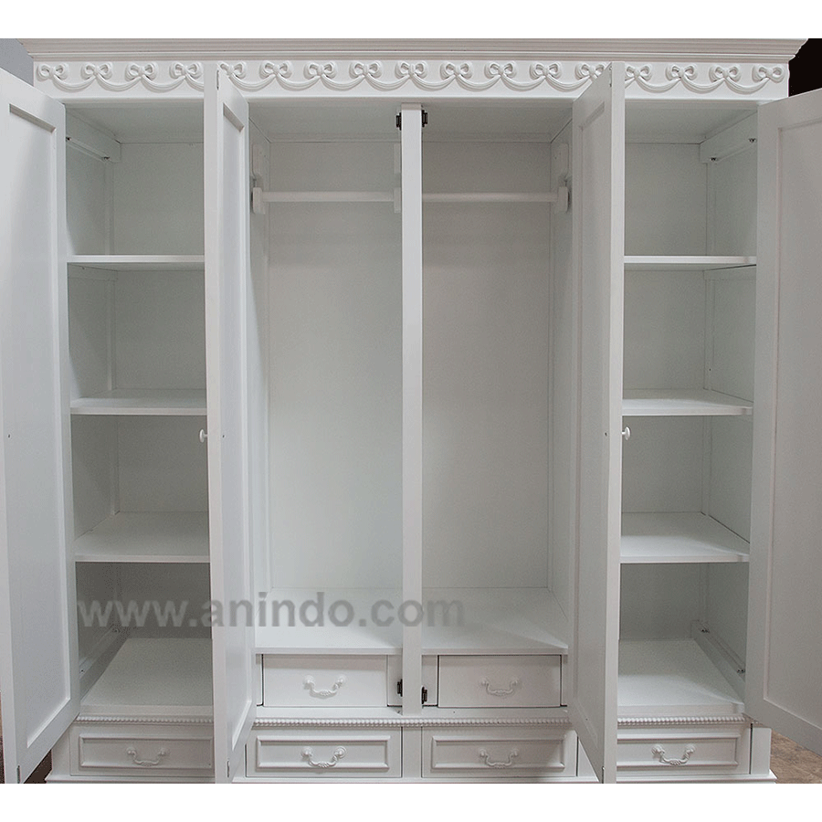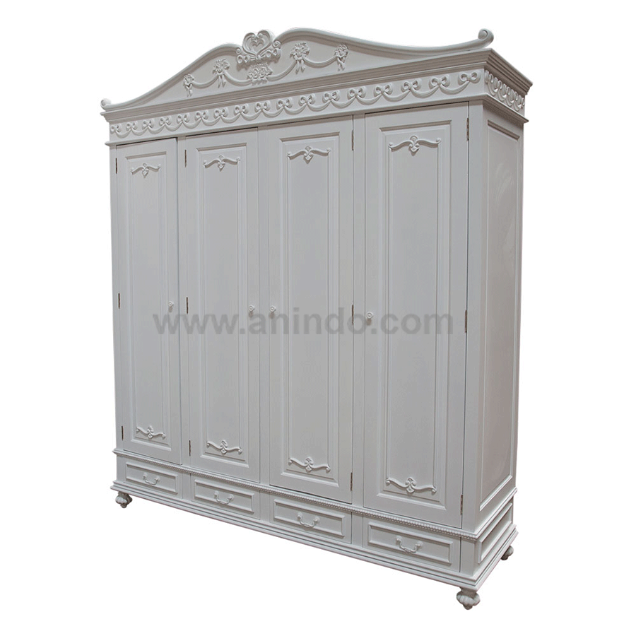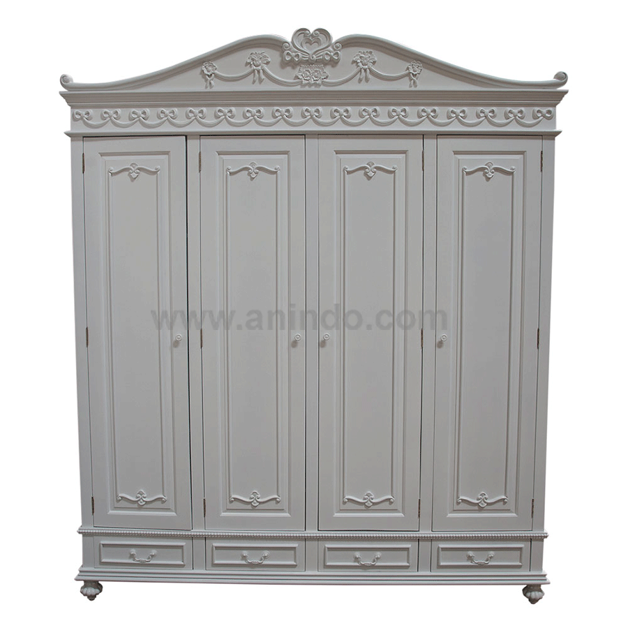 2 doors with 4 drawers wardrobe is made of solid mahogany wood in white painted finish.