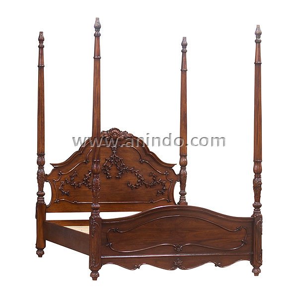 French poster canopy peluru bed is made of solid mahogany wood in pecan finish. It's king ...