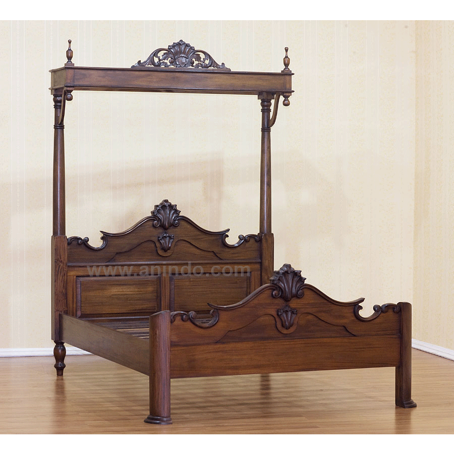 French poster canopy peluru bed is made of solid mahogany wood in pecan finish. It's king ...
