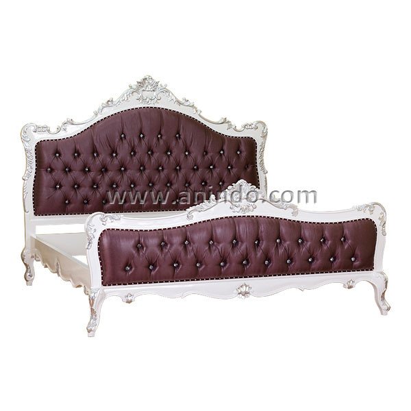French bed is made of mahogany wood in white combined with silver painted finish. ...