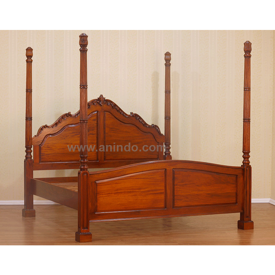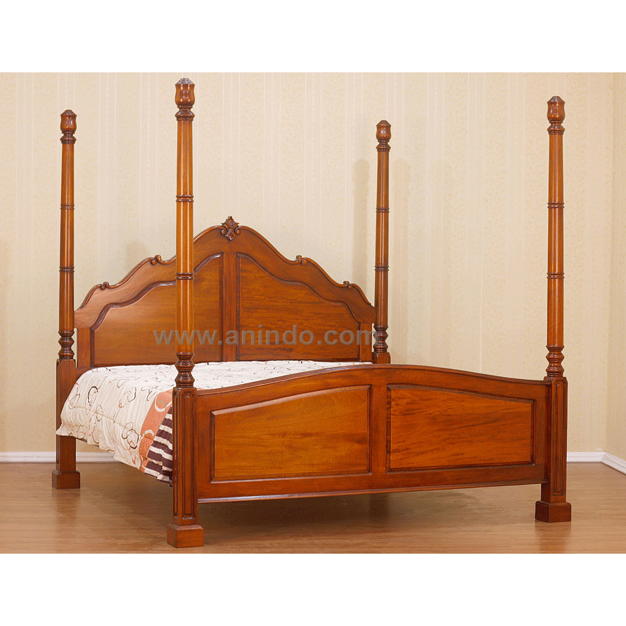 French bed poster is made of solid mahogany wood in pecan finish. It's queen size bed. Available in all mattress size.
