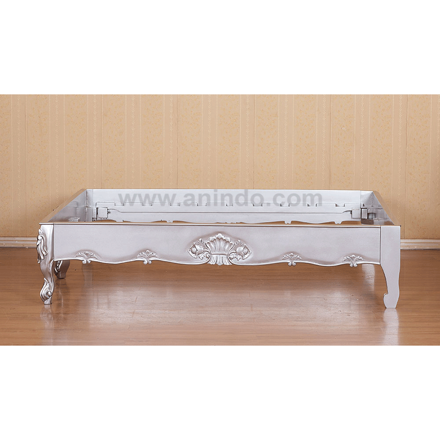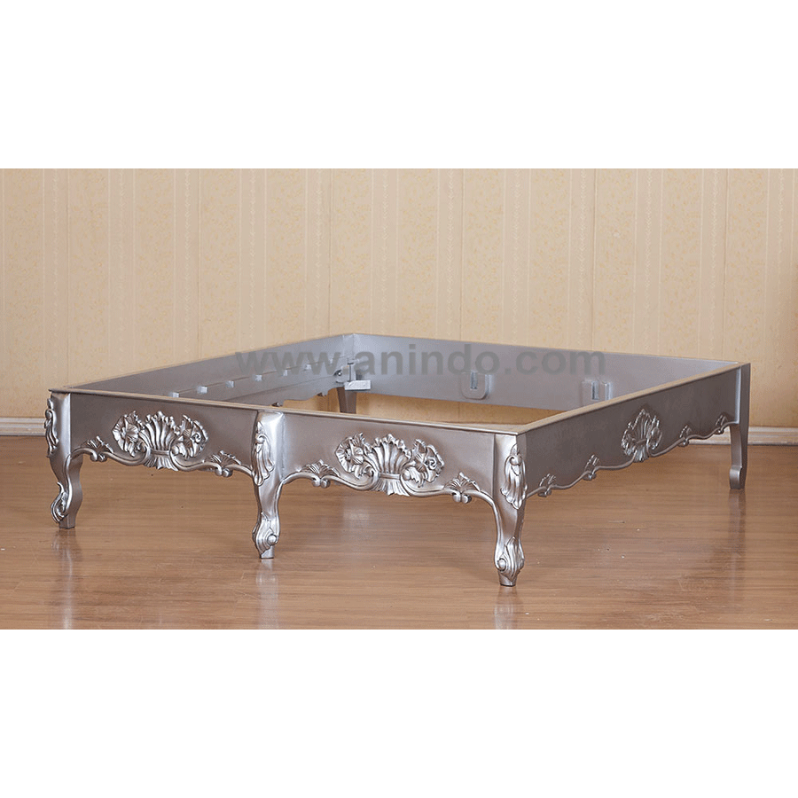 French bed square is made of mahogany wood in silver leaf finish. It's queen size bed. Available for all mattress size.