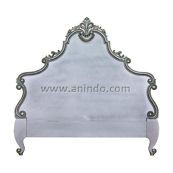French carved headboard is made of mahogany wood in silver leaf finish. It's queen size headboard. Available for all mattress size.