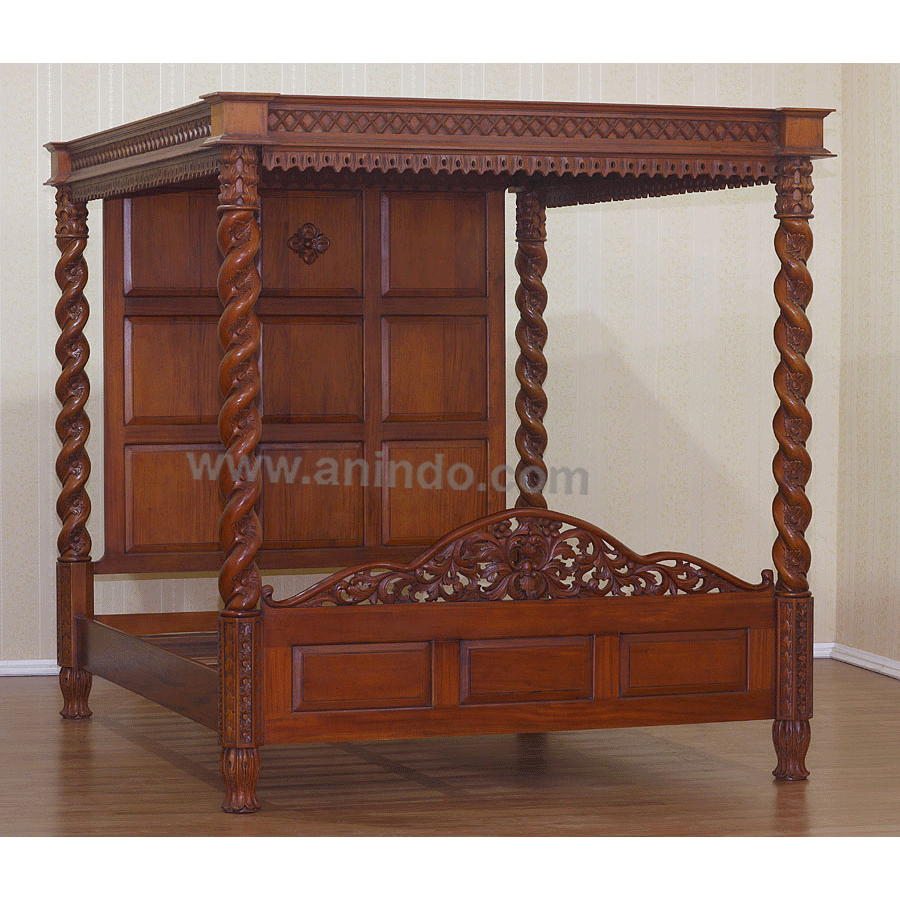 French poster canopy peluru bed is made of solid mahogany wood in pecan finish. It's king ...