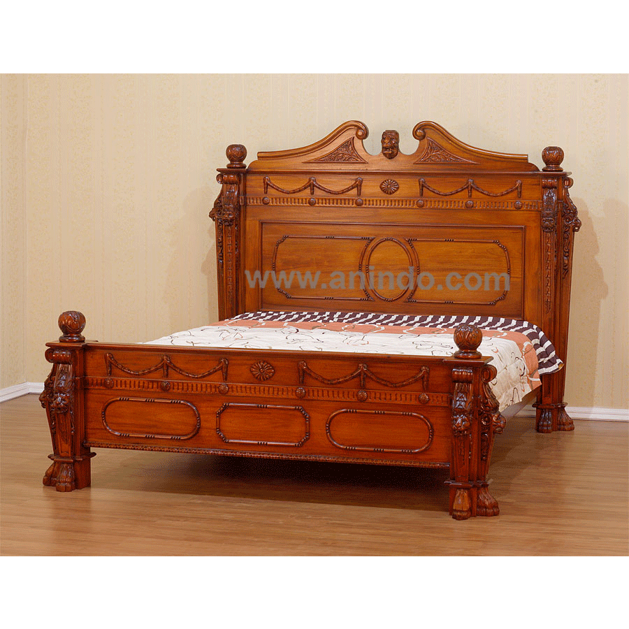 Lion head bed is made of solid mahogany wood in pecan finish. It's king size bed. Available for all mattress size.