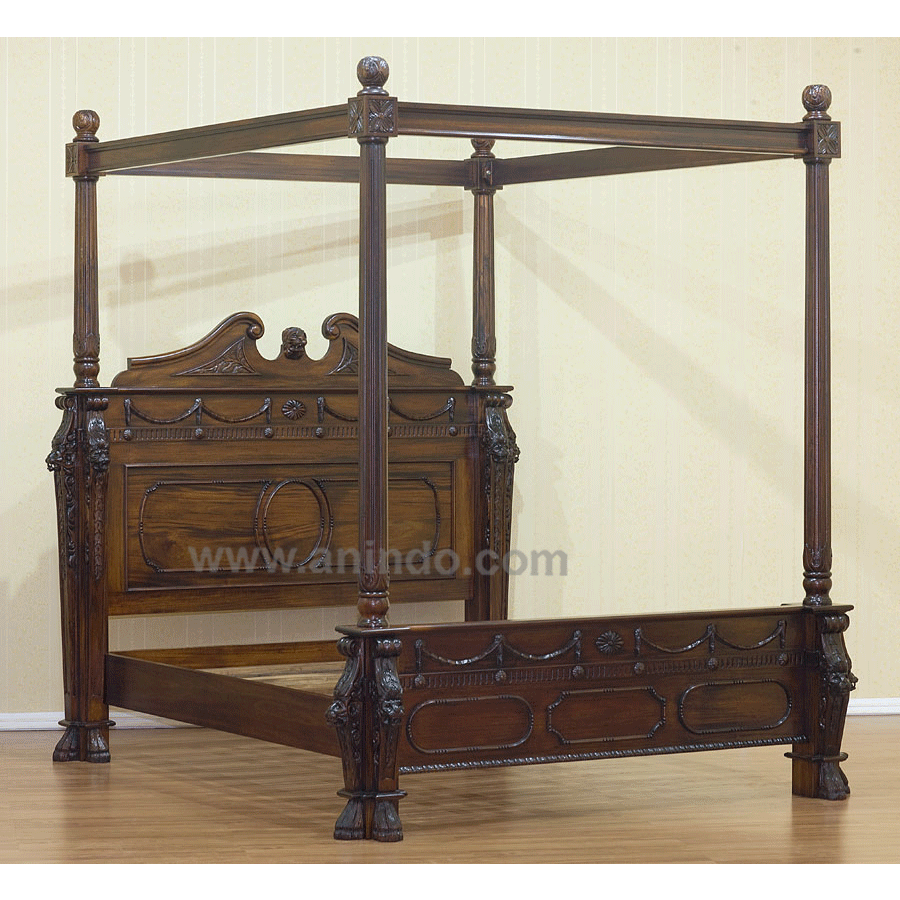 Lion head poster bed with carved is made of mahogany wood in standart finish. It's king size bed. Available in all mattress size.