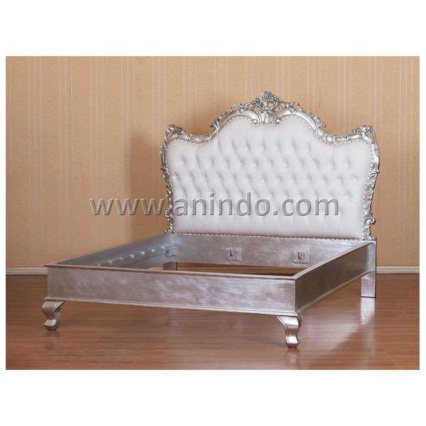 French bed is made of mahogany wood in white combined with silver painted finish. ...