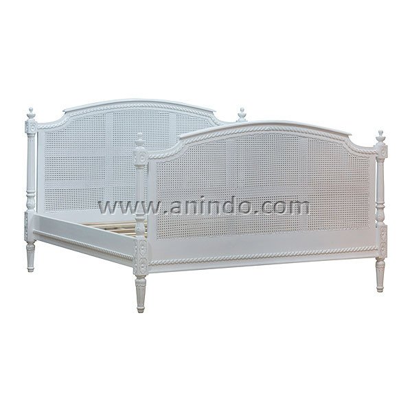 French bed is made of mahogany wood combined with natural rattan in white painted finish. ...