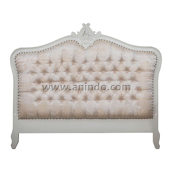 French headboard is made of mahogany wood in silver painted finish. Upholstered in ...