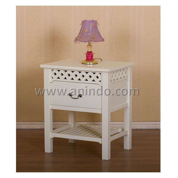 Timo bedside table 1 drawer carving is made of mahogany wood in white painted finish. ...