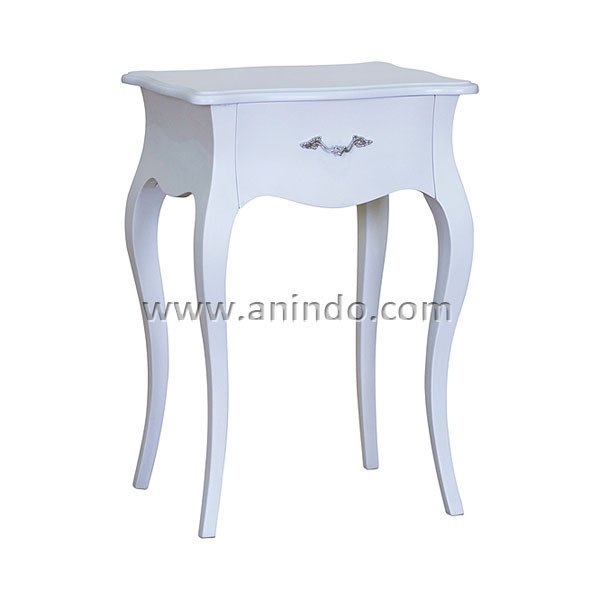 Aliane bedside table 1 drawer is made of mahogany wood in white painted finish. Silver handle.