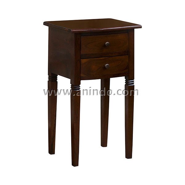 Anita bedside table 2 drawers is made of solid mahogany wood in walnut finish. Antique solid brass handles.