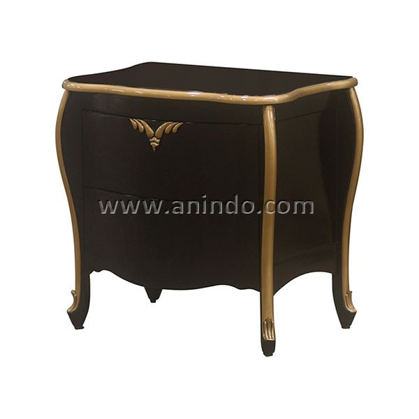 Bedside Korea 2 drawers is made of mahogany wood in black combine with gold painted finish. Soft opening drawers.