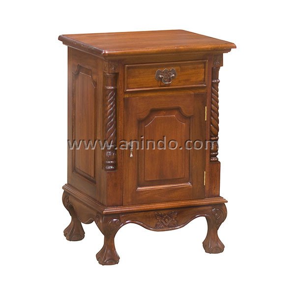 Colonial bedside cabinet carving 1 door 1 drawer is made of solid mahogany wood in pecan ...