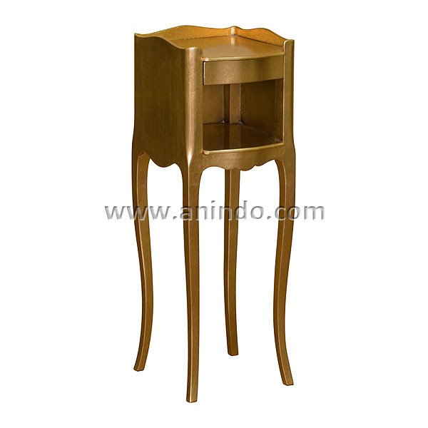 Cantique bedside table 1 drawer is made of mahogany wood in gold leaf finish.