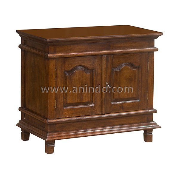 Casablanca 2 doors bedside table is made of solid mahogany wood in pecan finish. Antique solid brass key.