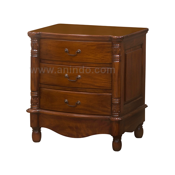 Aciok bedside cabinet 3 dawers with carving is made of solid mahogany wood in pecan finish. ...