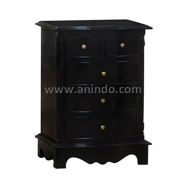 Comfort bedside cabinet 5 drawers is made of mahogany wood in black painted finish. Antique solid brass handles.