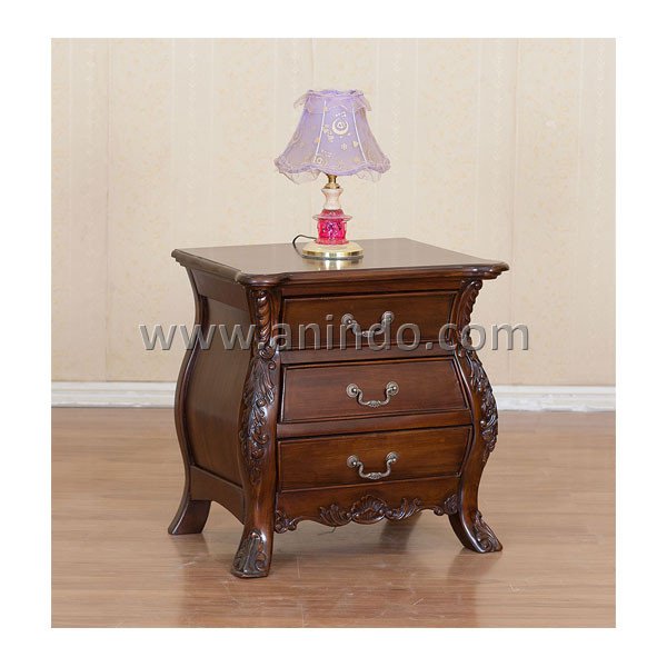 Aciok bedside cabinet 3 dawers with carving is made of solid mahogany wood in pecan finish. ...