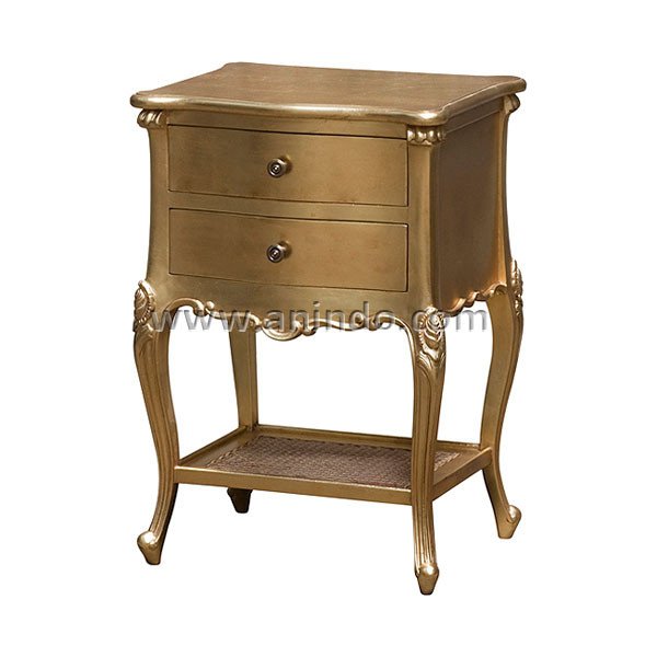 Steve bedside table 1 drawer is made of mahogany wood in gold leaf finish. Antique solid ...