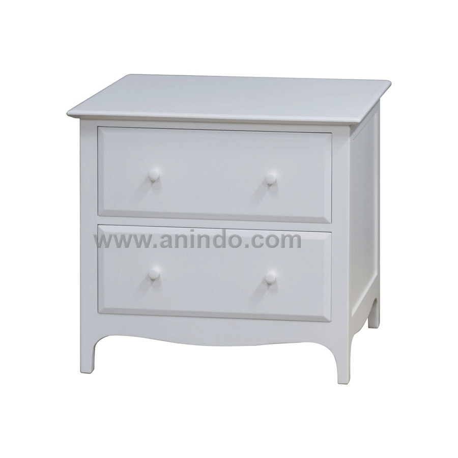 Jack big bedside cabinet 2 drawers is made of solid mahogany wood in white painted finish. Solid mahogany wood handles.