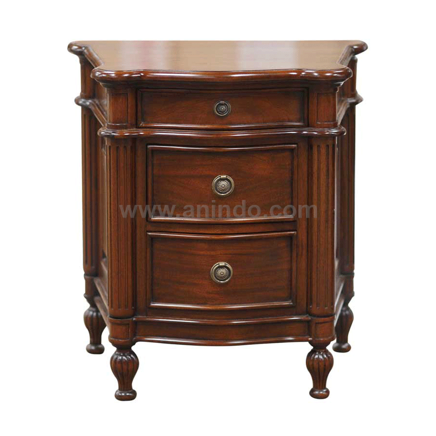 Nicky bedside cabinet 3 drawers is made of solid mahogany wood in pecan finish. Antique ...