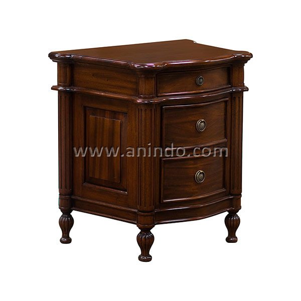 Colonial bedside cabinet carving 1 door 1 drawer is made of solid mahogany wood in pecan ...
