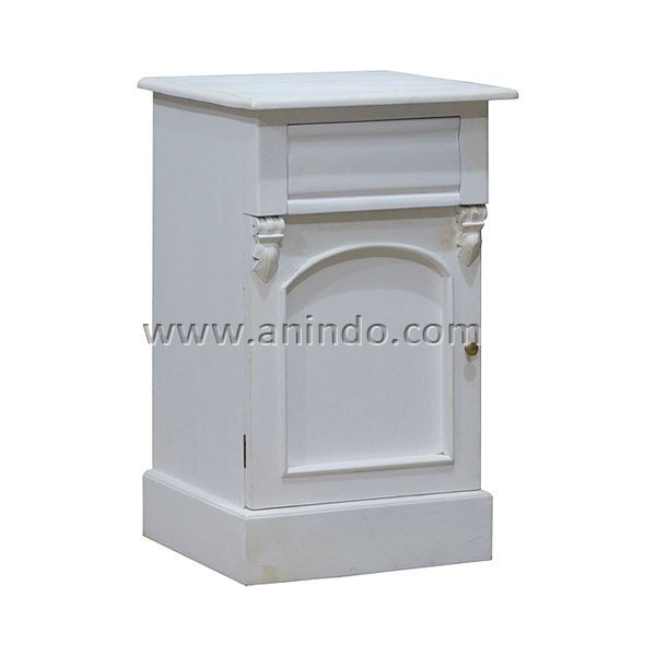 Timo bedside table 1 drawer carving is made of mahogany wood in white painted finish. ...