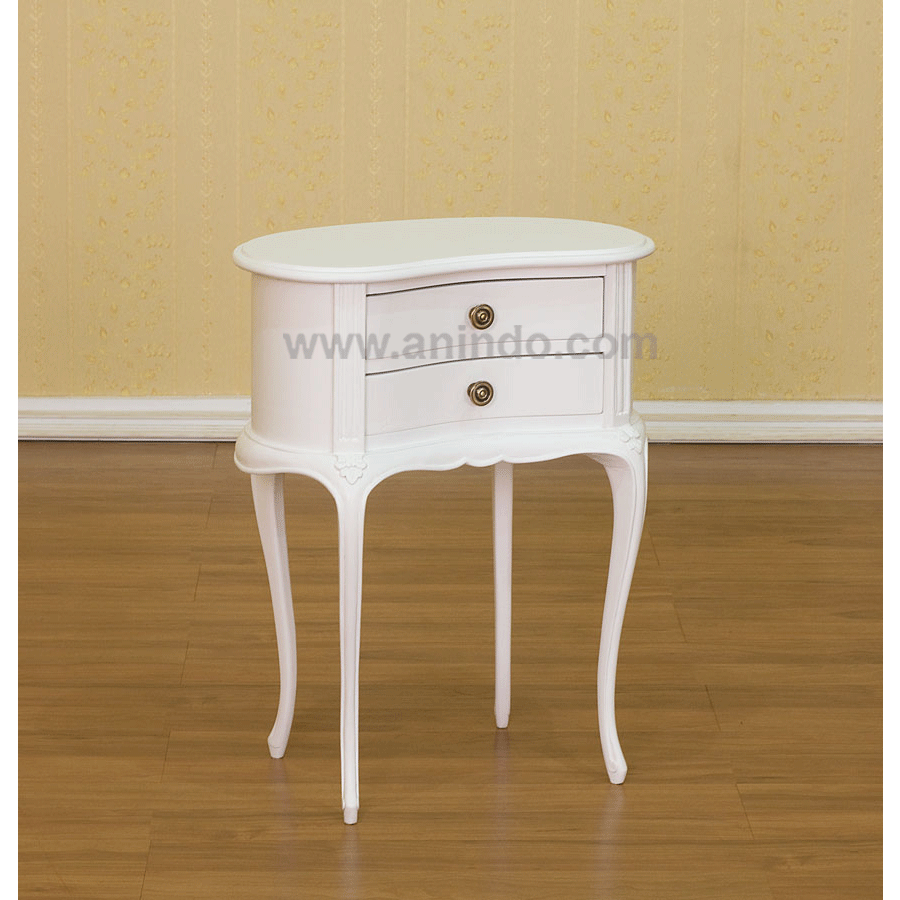 French bedside table 2 drawers carving is made of mahogany wood in white painted finish. ...