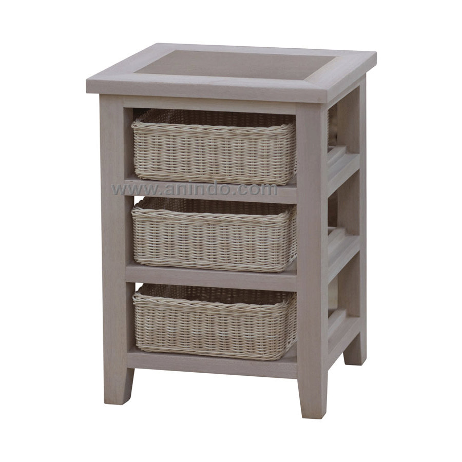 Laura bedside cabinet 3 drawers with natural rattan is made of solid mango wood in natural finish.