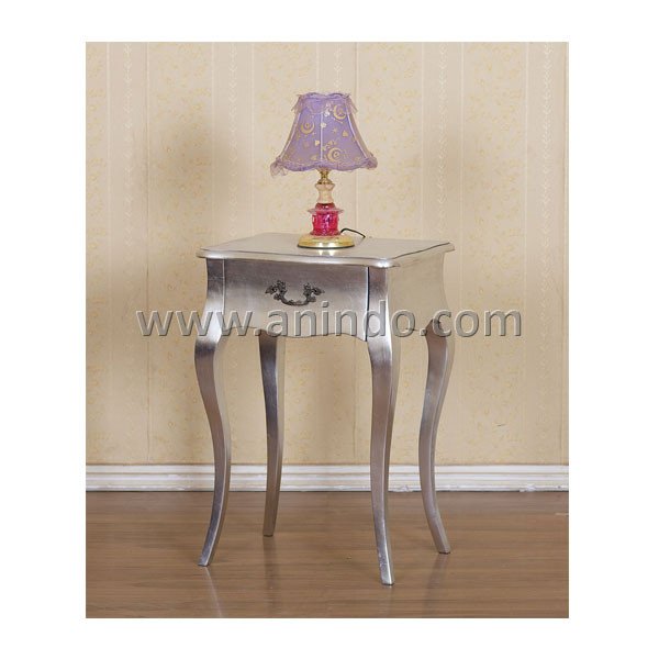 Cantique bedside table 1 drawer is made of mahogany wood in silver leaf ...