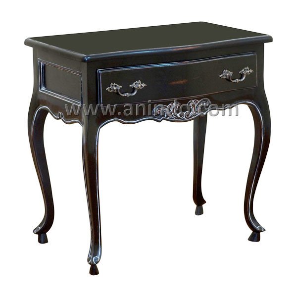 French bedside table 2 drawers carving is made of mahogany wood in black painted finish. ...