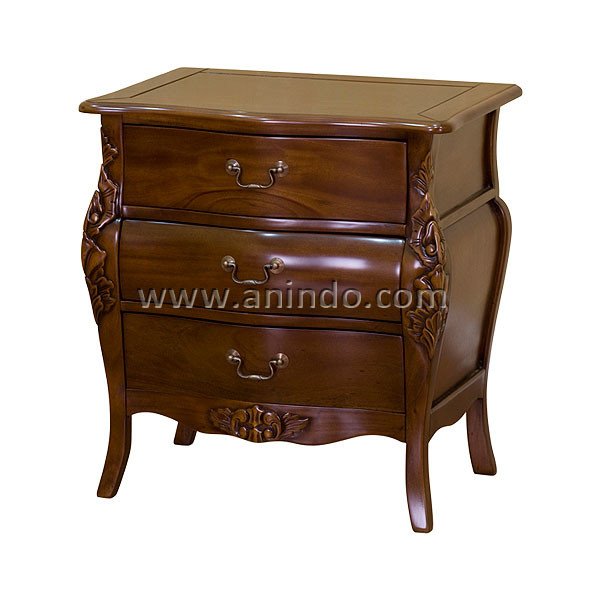 Rococo bedside cabinet 3 drawers is made of mahogany wood in pecan ...