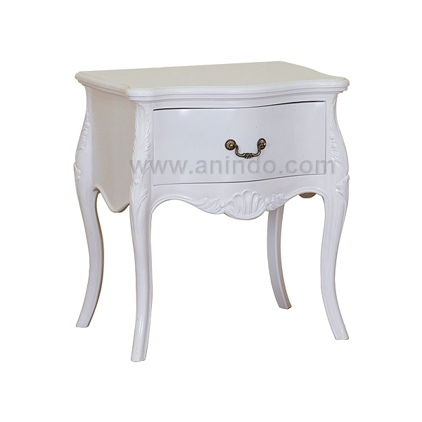 Timo bedside table 1 drawer carving is made of mahogany wood in white painted finish. ...
